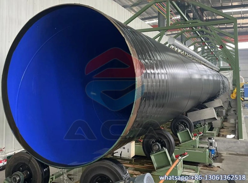 Our PipeMill coated production line achieves a three-layer polyethylene (3PE) anti-corrosion coating on the outer layer of the steel pipe and an epoxy powder coating on the inner layer. The three-layer polyethylene coating mainly consists of a fusion-bonded layer, an adhesive layer, and a polyethylene protective layer. This multi-layer structure effectively isolates the steel pipe from external environmental corrosion. The inner epoxy powder coating provides internal corrosion protection, preventing the medium from corroding the inner wall of the steel pipe. This double-layer anti-corrosion design not only enhances the overall anti-corrosion capability of the steel pipe but also plays a positive role in resisting the aging process. External 3PE and internal epoxy powder coated steel pipes are widely used in various engineering projects, such as urban gas transmission, water supply pipelines, and oil and gas pipelines.